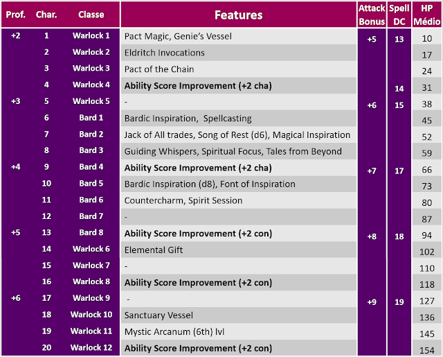 //o fato que o tempo de permanência no vessel que não é prejudicado pela Multiclasse com bardo, permite que os descansos curto do warlock e futuramente os longos também possam ser feitos em um ambiente mais confortável e controlado. //